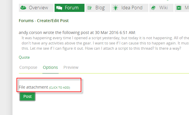 It was happening every time I opened a script yesterday, but today it is not happening. All of the scripts were created at least 6 months ago and don’t have any activities above the gear. I want to see if I can cause this to happen again. It must not be the scripts, but something else causing this. Let me see if I can figure it out. How can I attach a script to this thread? Is there a way?